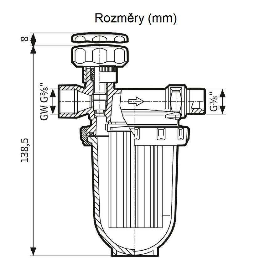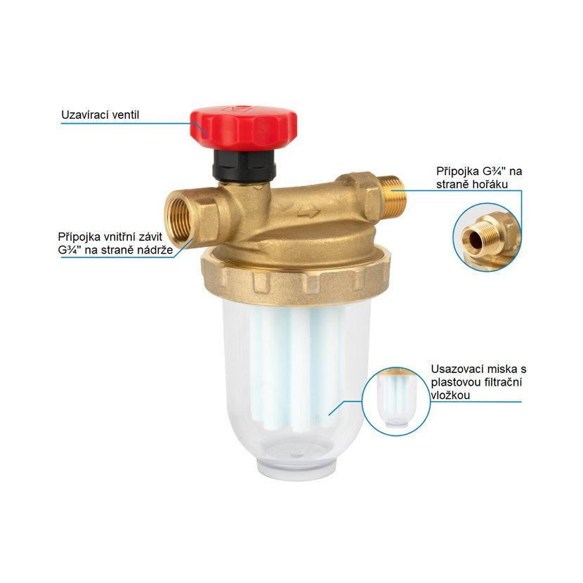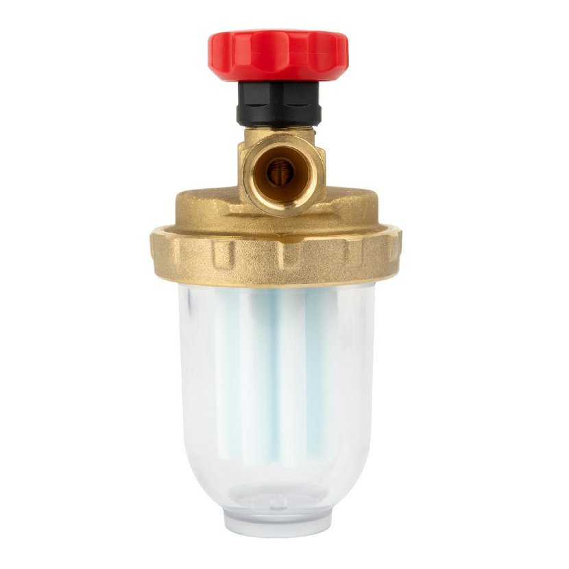 Odolné mosazné tělo a průhledná sedimentační nádrž pro vizuální kontrolu