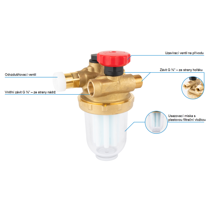 Jednotrubkový olejový filtr R 500 Si je určen pro instalace se zpětným vedením nespáleného paliva. Efektivně odstraňuje pevné nečistoty z lehkého topného oleje, motorové nafty, biopaliv a bionafty s obsahem rostlinných přísad do 30 %. Filtr má mosazné tělo, průhlednou sedimentační nádrž pro snadnou kontrolu, odvzdušňovací ventil s vývodem na hadičku a vyměnitelnou plastovou filtrační vložku. Montáž je snadná díky přiloženým svěrným spojkám a nástěnnému držáku.