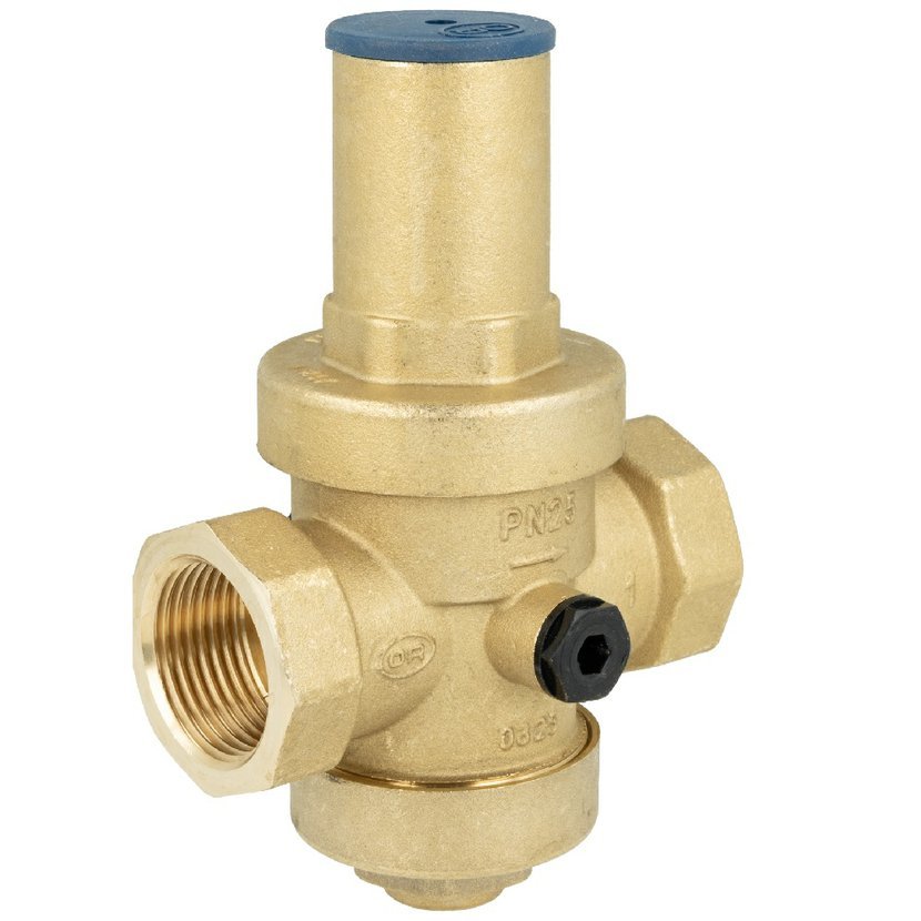 Mosazný reduktor určený pro systémy pitné vody, vytápění a chlazení. Stabilizuje výstupní tlak na nastavenou hodnotu bez ohledu na kolísání tlaku na vstupu. Vhodný pro montáž za vodoměr nebo jiné místo v rozvodu, kde je třeba regulovat tlak.